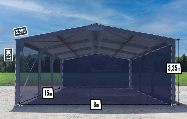 Robustesse de la structure grâce aux profils Σ : la plus grande dimension sur le marché des abris, plus rigide qu'un profil C