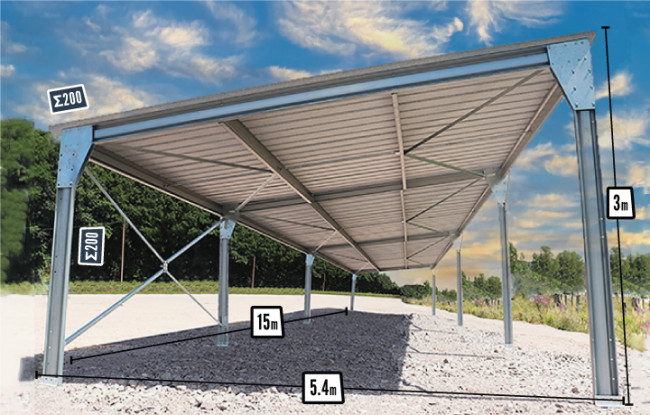 Robustesse de la structure grâce aux profils Σ : la plus grande dimension sur le marché des abris, plus rigide qu'un profil C