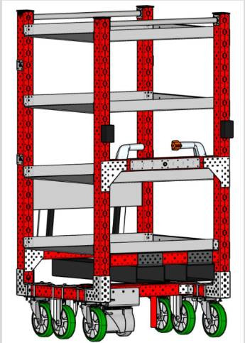Structure acier thermolaqué et roues pivotantes avec frein