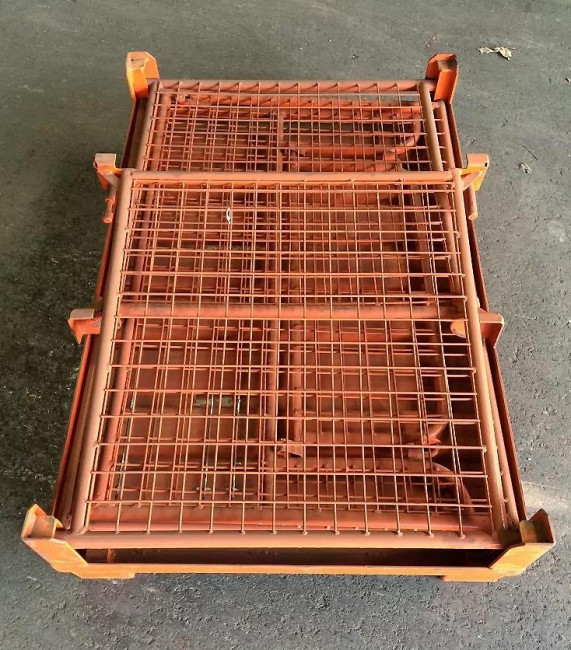La caisse palette grillagée repliable en acier d'occasion est la solution idéale pour vos besoins de stockage et de transport industriel.