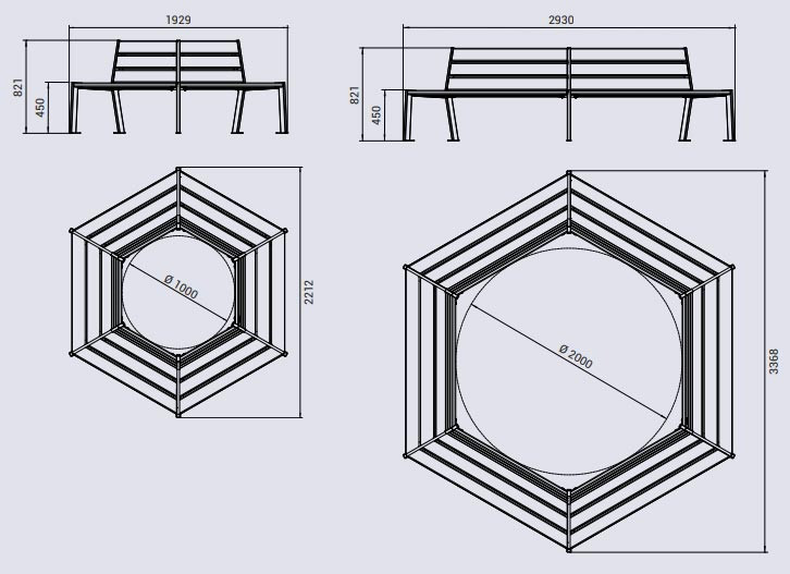 Réf. TC : 479364756Banc tour d’arbre en acier bois 2000 3368 x 2930 450 Acajou Gris Procity 182