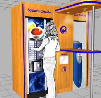 Distributeur payant (carte et monnaie) à boissons chaudes et boissons fraîches Peu encombrant Merci