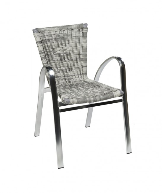 Sa structure est fabriquée en aluminium, et son assise est réalisée avec tressage wicker bicolore.
