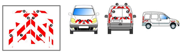 1 Bande rétroréfléchissante blanche + sérigraphie rouge arrière