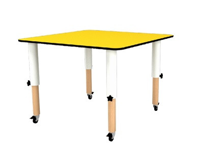 Les piétements bas réglables permettent de mieux supporter les tables de crèche.
