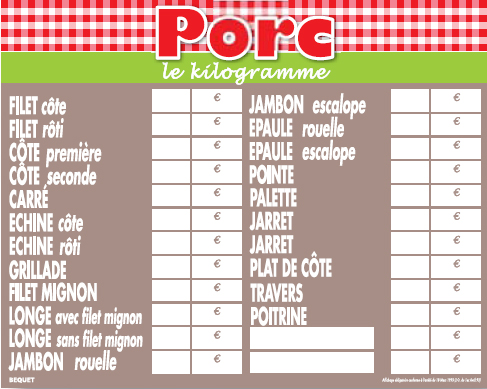 Notre panneau d'affichage prix viande constitue la solution idéale pour respecter la réglementation en vigueur dans votre boucherie ou charcuterie.