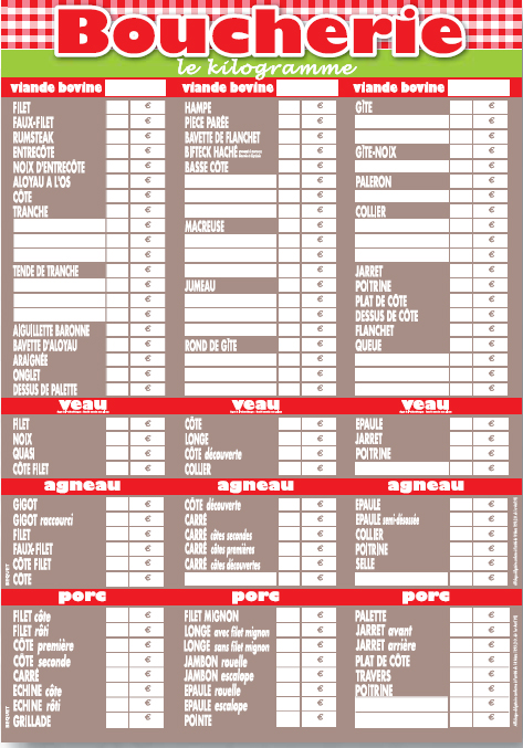 Notre panneau d'affichage prix viande répond parfaitement aux exigences légales d'affichage dans les commerces de bouche.