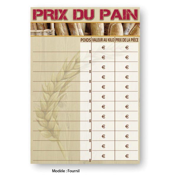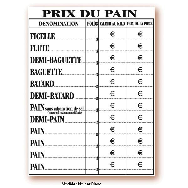 Tableau prix du pain