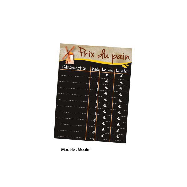 Réf. TC : 536721150Panneau prix pour pain Moulin 30 x 40 Prix des pains spéciaux A l'unité