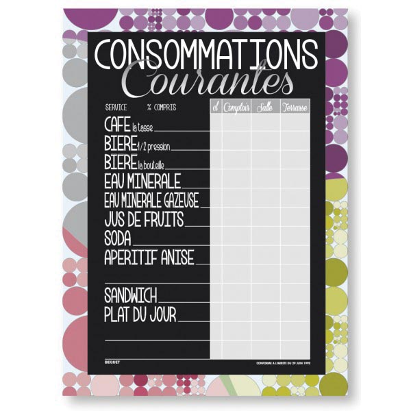 Une affiche qui renseigne les clients sur les tarifs des boissons, plats... Etc.