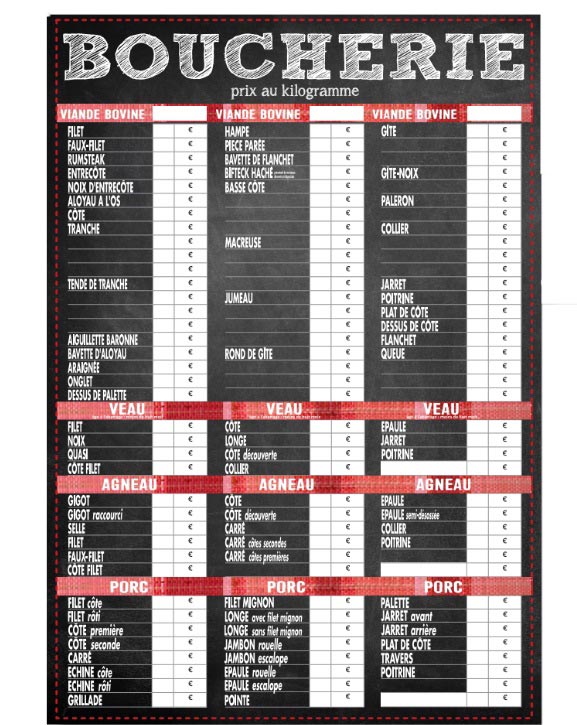 Ce panneau est utilisé dans l’affichage des prix pour les boucheries et les charcuteries.