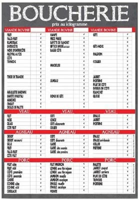 Panneau tarifs boucherie