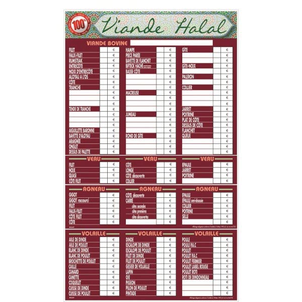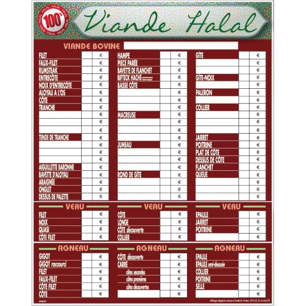Panneau d'affichage prix viande halal