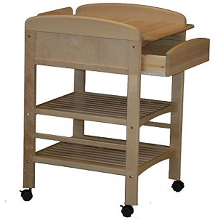 En bouleau massif et vernis acrylique, notre meuble à langer est équipée d’un tiroir frontal et deux étagères.
