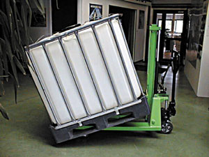 Nous recherchons un transpalette capable d"incliner les cubis pour pouvoir les vider entièrement.