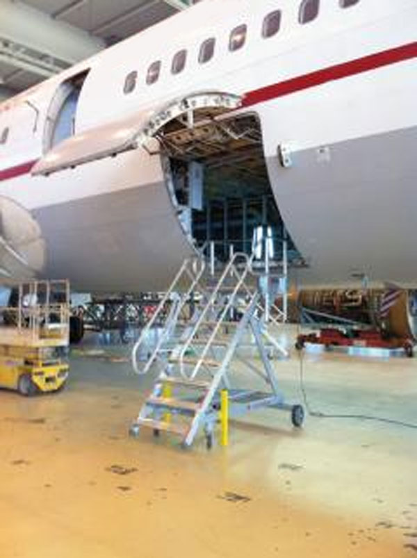 Nous sommes professeurs en maintenance Aéronautique et nous avons besoin d"un escabeau avec une plate-forme (grande pour 2 personnes et hauteur de la plate-forme environ 2 mètres).