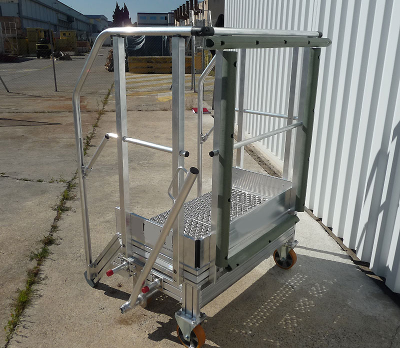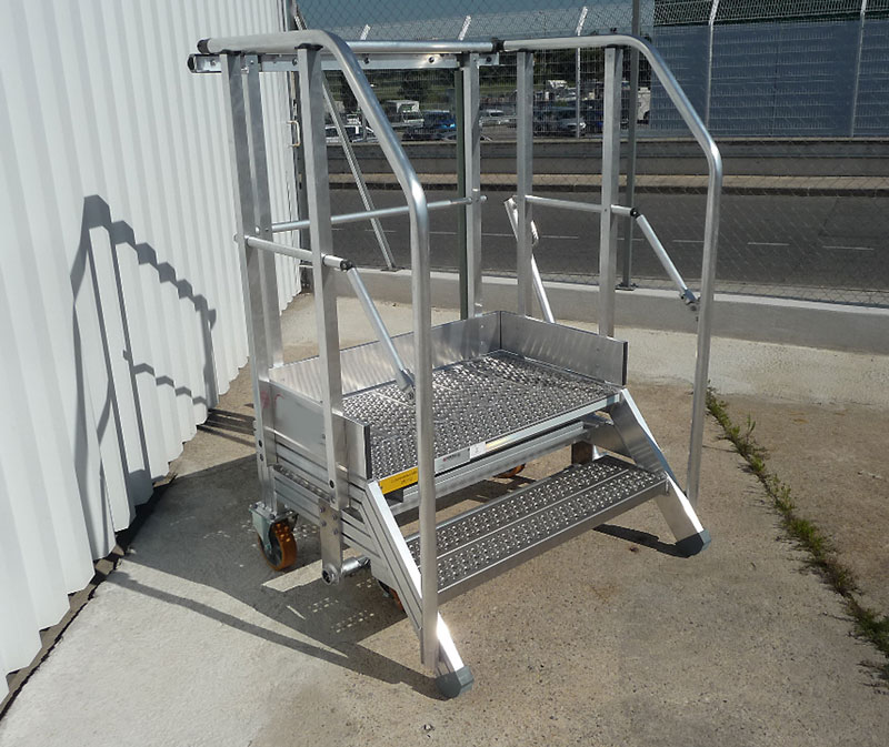 Cet escabeau, pratique et facile à déplacer, combine ergonomie et sécurité pour répondre aux besoins des professionnels du secteur aéronautique.