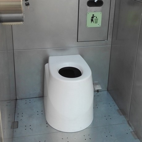 Cette toilette sèche publique accessible offre une solution élégante et fonctionnelle pour les espaces publics.