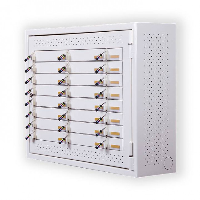 Elle facilite la gestion et le stockage des smartphones en entreprise et en collectivité. Les 16 casiers dédiés aux tablettes et les 8 casiers réservés aux téléphones permettent d’adapter le rangement aux formats des appareils utilisés. Vous gagnez du temps lors de la distribution et de la récupération des équipements.