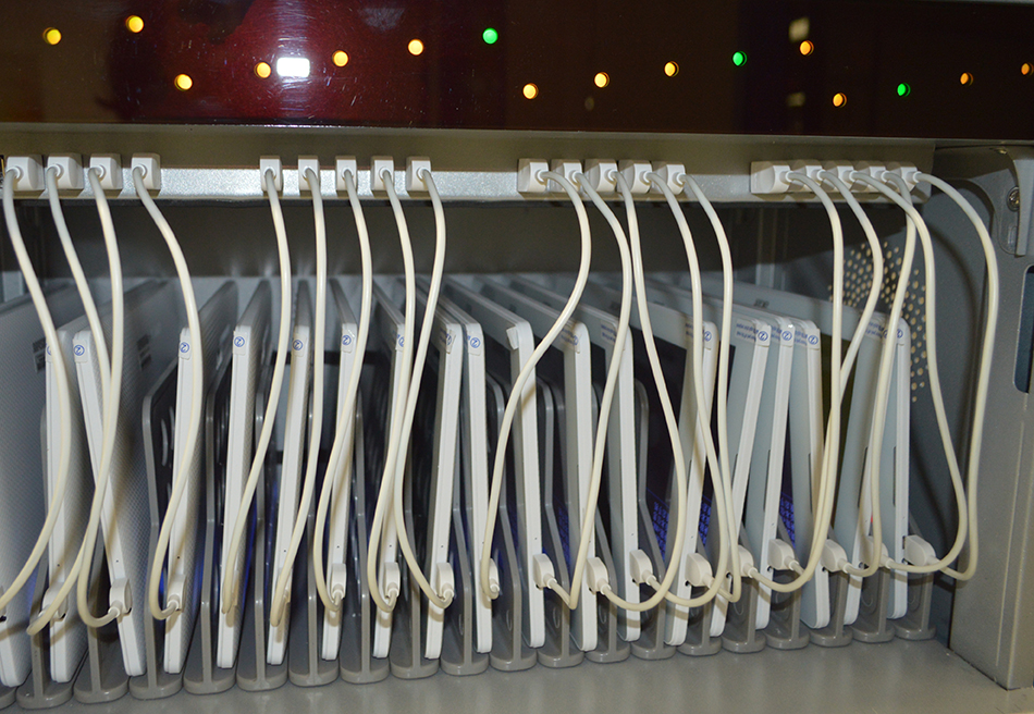 La station de recharge tablettes est équipée d’un système électronique de chargement filaire.