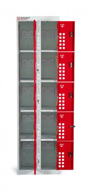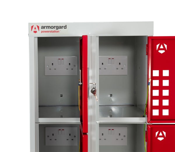 La borne de recharge à casiers PowerStation permet de laisser ses équipements en charge en toute sécurité.