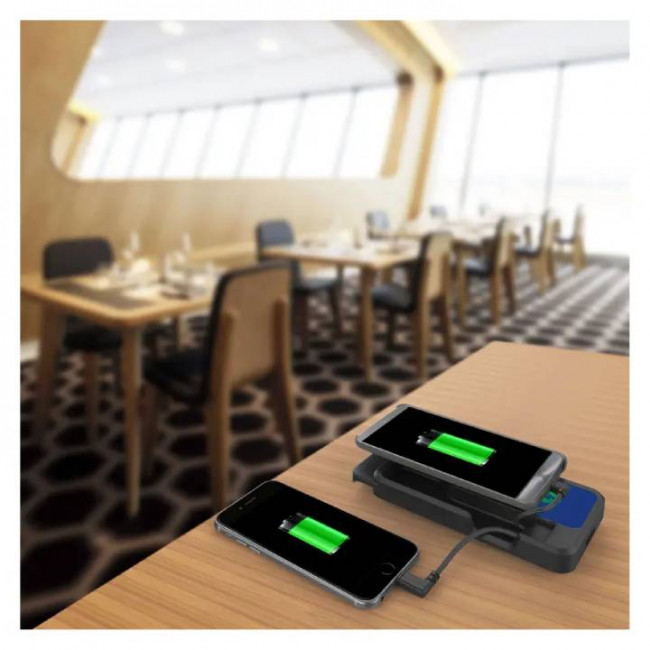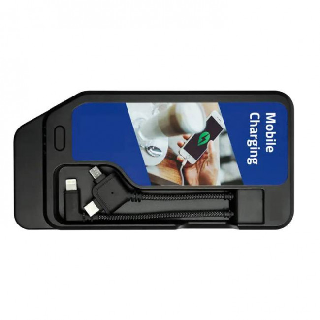Notre station de charge pour batterie de secours S12B-FR intègre 12 batteries de secours d’une capacité de 10 000 mAh (DC 5V – 2A). Chaque batterie dispose d’une triple connectique intégrée et d’un témoin de charge à LED. La recharge automatique s’effectue via une connectique propriétaire, sans branchement manuel. La station est à poser et affiche des dimensions de 340 x 240 x 180 mm (HxLxP). La personnalisation de la station et des batteries est possible.