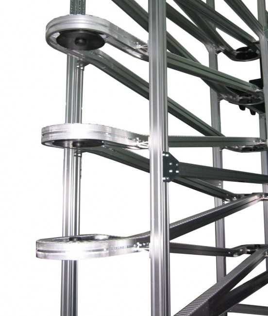 Le convoyeur maximise l'utilisation de l'espace vertical, offrant une solution idéale pour les environnements limités en surface au sol.