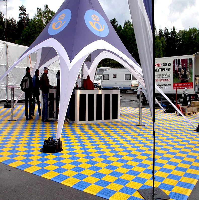 Pour Juin, On monte un stand et on cherche des dalles sol extérieur sur une surface de 35m² . coloris: gris.
