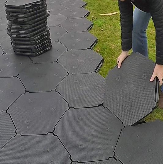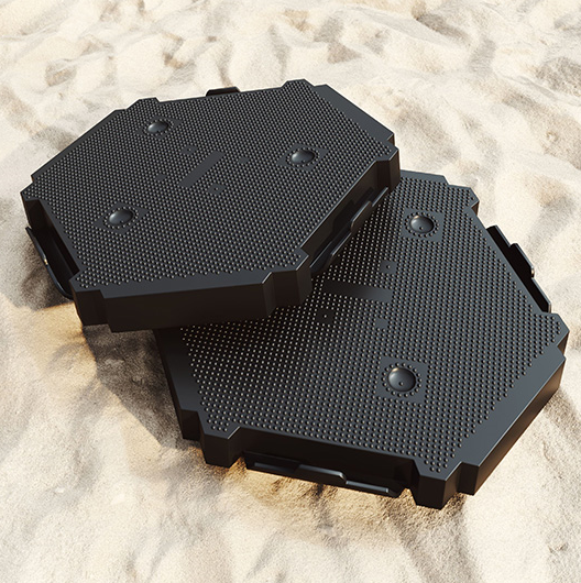 Ces dalles ultra-résistantes permettent de stabiliser un sol meuble (gazon, sable, neige) afin de pouvoir supporter des charges lourdes.
