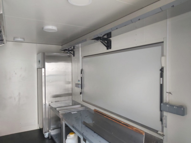 Je recherche un container d"occasion aménagé pour pouvoir faire des plats cuisinés et pizzas (four à pizza) environ 4 m de long.