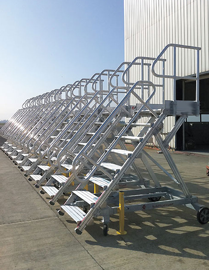 Cet escabeau est conçu pour répondre aux exigences des travaux de maintenance aéronautique et pour faciliter l’accès des passagers lors des escales.