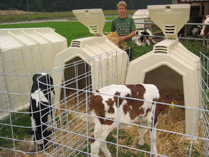 Cette huche de veaux est le système le plus efficace pour les veaux jusqu'à la huitième semaine postnatale.