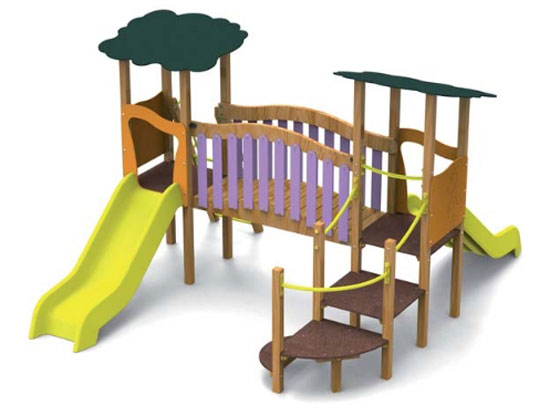 Elle est composée de 2 tours arbre, d’un accès Eko 3 paliers, d’un petit escalier Eko, d’un pont incliné et de 2 toboggans, cette structure est idéale pour jouer et s’amuser.