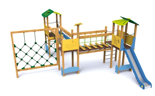 La structure est composée de cordes, de 2 tours, d’un commando à cordes, d’un petit escalier à cordes, d’une passerelle à cordes, de 2 sièges Tertulia, d’un pont oscillant, d’un jeu baleine et de 2 toboggans, un maximum d’activités en une seule structure pour plus d’amusement.