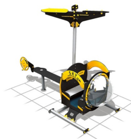 Structure de jeux "sous forme d'hélicoptère" en tube d'acier galvanisé 2 panneaux à l'intérieur et à l'extérieur et 100% recyclable éclats de polyéthylène à l'épreuve et non toxique.