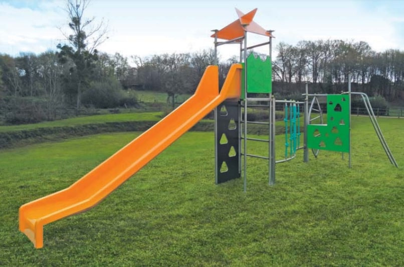 - Glissière en polyester, glissière tubulaire, 2 échelles verticales et 2 murs à grimper