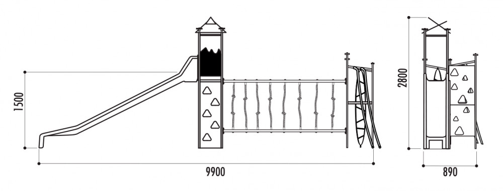 - Dimensions : (L x l x H) 9900 x 890 x 1500 mm