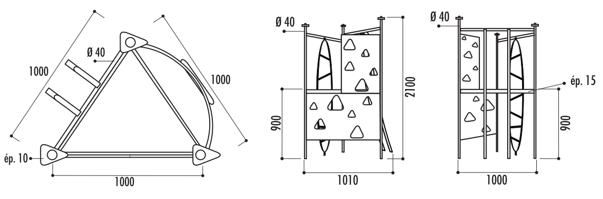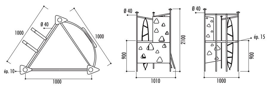 Glissière tubulaire, échelle verticale et mur à grimper |