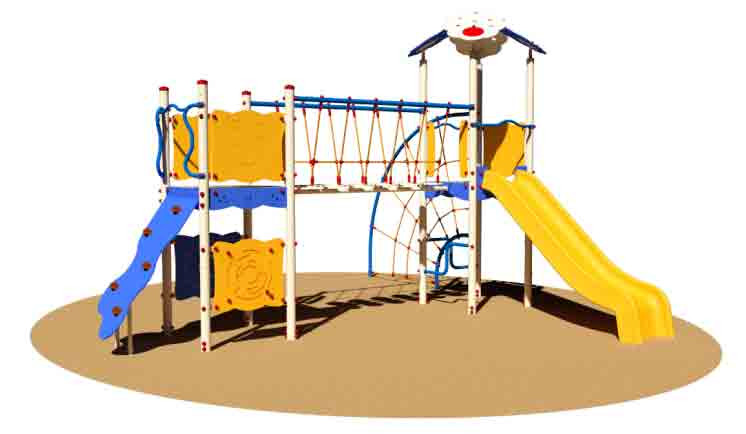 structure aire de jeux extérieurs avec toboggan.