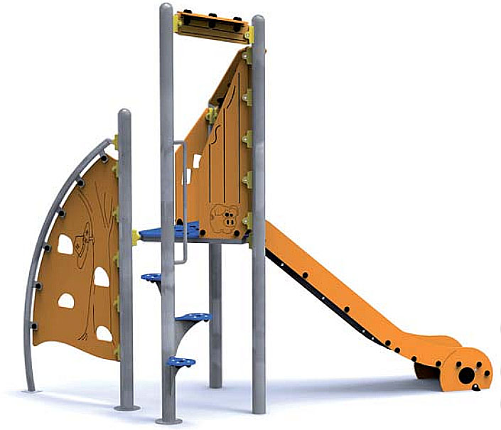 Elle est composée d’une tour, d’un toboggan et d’escaliers.