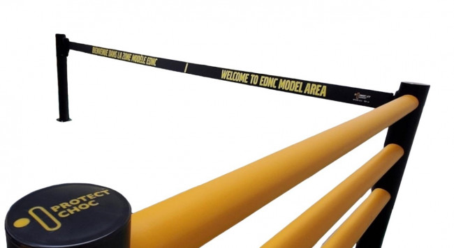 - Fixe : avec platine et vis sur un mur ou sur un pied de nos barrières flexibles à mémoire de forme