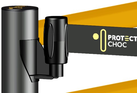 Pour restreindre ou interdire un accès à des piétons ou chariots, les sangles rétractables peuvent être installées en solution :