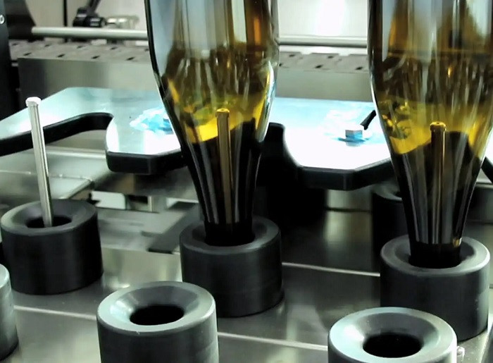 - Elles sont ensuite retournées et chargées dans les cônes centreurs des magasins à bouteilles, circulant en circuit fermé