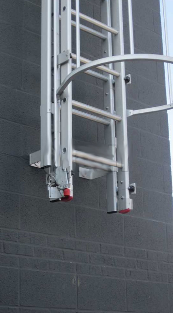 - L'échelle peut aussi être libérée par le dessus pour permettre l'évacuation en toute sécurité de sorties de secours existantes ou d'autres applications.