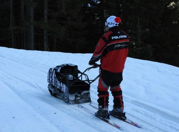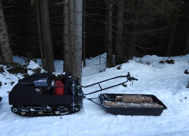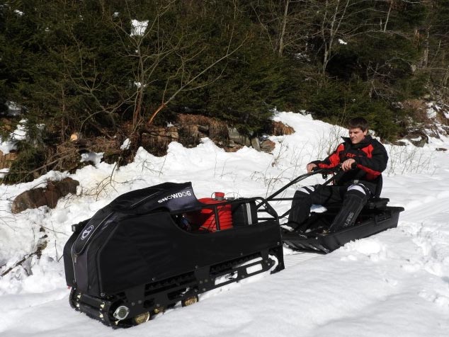Comme alternative plus abordable à la motoneige ou au véhicule tout-terrain (QUAD/ATV/VTT), le Snowdog est conçu pour les chasseurs, les trappeurs, les pêcheurs sur glace et les autres amateurs de plein air. L'opérateur peut s'asseoir confortablement dans un traîneau, avoir beaucoup d'espace pour transporter du matériel et des fournitures dans ce véhicule compact et très polyvalent. Le travail intense se transforme en une aventure amusante avec un véhicule comme Snowdog.