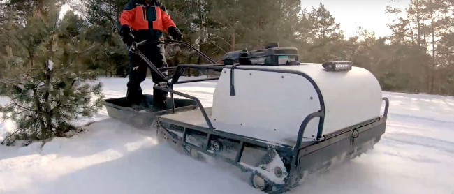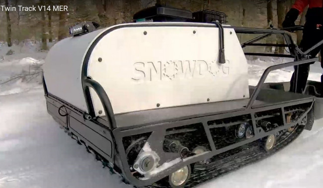 Comme alternative plus abordable à la motoneige ou au véhicule tout-terrain (QUAD/ATV/VTT), le Snowdog est conçu pour les chasseurs, les trappeurs, les pêcheurs sur glace et les autres amateurs de plein air. L'opérateur peut s'asseoir confortablement dans un traîneau, avoir beaucoup d'espace pour transporter du matériel et des fournitures dans ce véhicule compact et très polyvalent. Le travail intense se transforme en une aventure amusante avec un véhicule comme Snowdog.