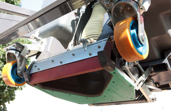 Tuyau aspire-feuilles avec connexions sur les côtés et l’arrière de la cuve.