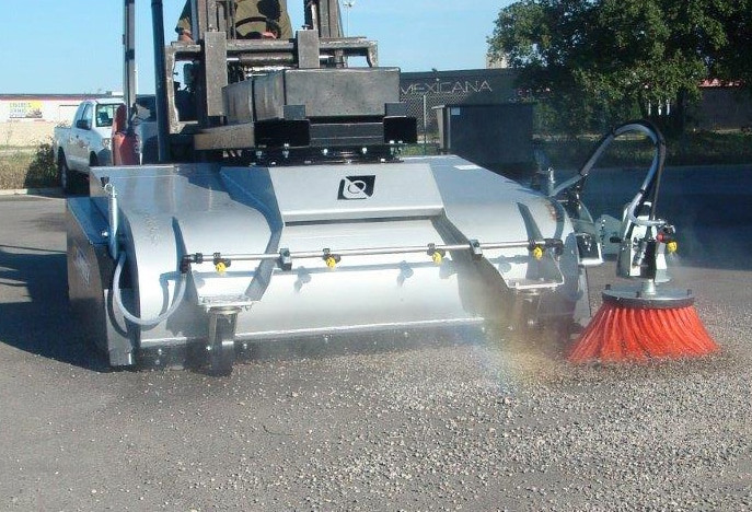Cette balayeuse autonome pour chariot élévateur permet de balayer et de ramasser les déchets en un seul passage.