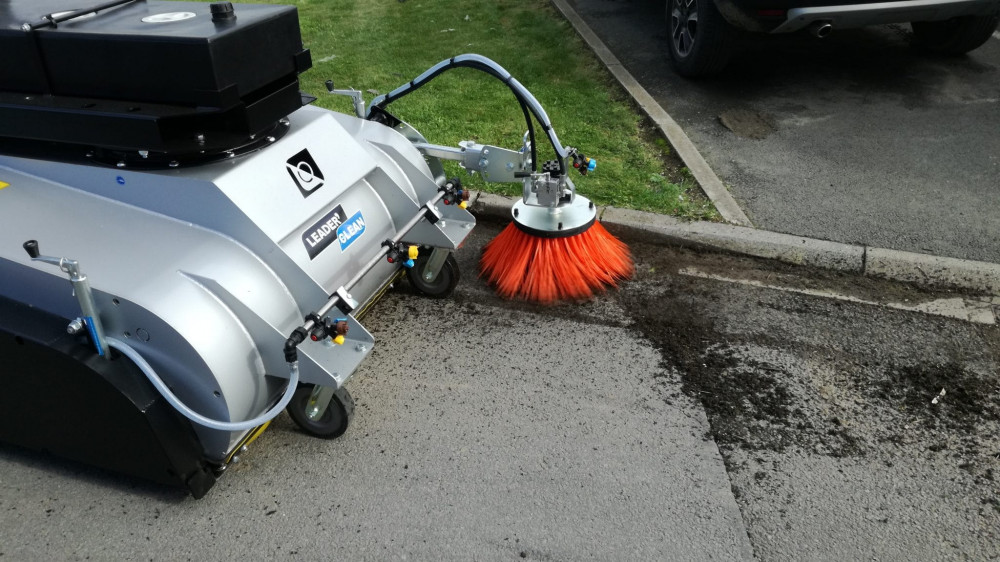 Cette balayeuse industrielle est idéale pour le nettoyage des surfaces en extérieur.