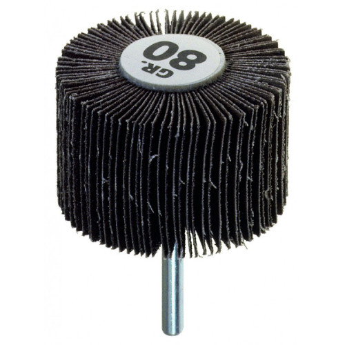 Cette roue à lamelles sur tige avec un grain de 80 est idéale pour les travaux de ponçage et de finition.